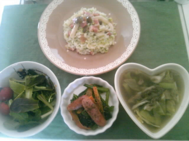こんばんは★* 今日のごはんは *しめじとベーコンとブロッコリーのクリームリゾット *マイタケと野菜のスープ *ベビーリーフサラダ *ほうれん草とウィンナーのバジルソテー です *** 昨日も妹にばったりw あたしの日記に登場しすぎですねw そして今日は.久しぶりにお散歩 でもコンビニに寄って.気が付いたらおやつを買ってるあたしが… ダイエットを忘れて満面の笑みで完食しちゃいました~\(+×+)/ 散歩の意味がないよぅ(P;Д;q)w 明日から頑張るぞ~w