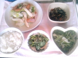 こんにちは★* 今日のごはん *ひじき *春菊のごま油和え *水菜とまいたけのおすいもの *ごはん *白菜とエリンギとウインナの生姜いため です★* *** 昨日は友達が我が家へ遊びに来ました お母さんの誕生日が近いのでお互い悩む… 温泉旅行にしようかと思ったけど、微妙な顔をされてしまい…w 皆さんは親へのプレゼントってどうしてますか? *** 今日はもうしばらくしたら天神?で送別会♪v(^ω^)v♪ サザエなど魚貝とお肉が食べ放題 食べ過ぎと飲み過ぎに注意だw では行ってきます♪v(^ω^)v♪