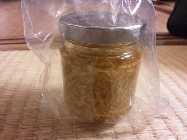 写真はカレンデュラの精油(作成中:2週間経過もの)です。