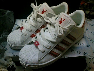 探す基準は…白ぃ靴で、ピンクの模様が入ってるモノ…