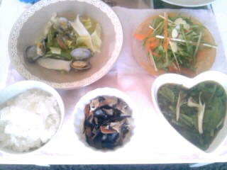 こんにちは★* 妹が来た時のごはん *あさりとキャベツの酒蒸し *水菜と人参のサラダ *ひじき *ごはん *春菊とまいたけのおみそ汁 です★* 妹お代わりしてた~ *** さて♪v(^ω^)v♪ 今日の夜京都に出発です 朝は6時に起き、仕事の整理をして、コーヒーをごちそうになり、服を選んで、今からお風呂(*゜-ン*) 楽しみだ~Σ(ノへ`*) ドキ(*´ェ`*)ドキ また更新します よかったらお付き合いしてくださいねw