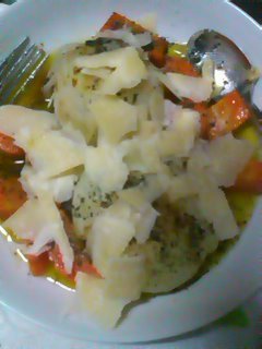 こないだはお醤油かけて和風で食べたので、今回はちと洋風に・・・オリーブオイルで蒸してから、塩・こしょう・バルサミコ酢で味付け?して、仕上げにパルミジャーノチーズをスライスしてのっけてみました。
