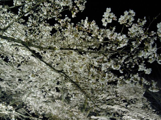 黒い空と薄桃色の桜のコントラストがたまらんです。