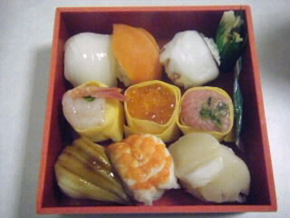 夜行バスで疲れたので、早めにホテルに戻ることにして、京都駅で手鞠寿司を買いました★*