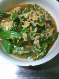 旬の絹さやを使って、「絹さやとピーマンの卵とじ」を作ってみました。