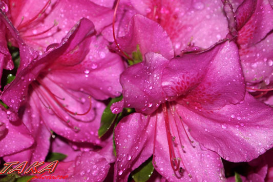 先日、雨上がりの夕方に撮影したツツジですが、最初はストロボを使わず撮ってました。