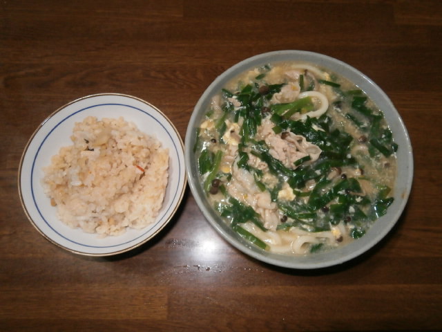 茸と韮と豚肉の中華風味あんかけうどん