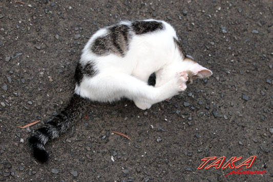 で、今日の写真は足を上げて股を開いてペロペロです。