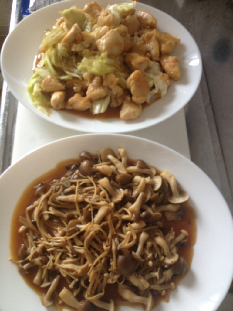 今日のお昼ご飯。 きのこのバター醤油炒めと 鶏肉とキャベツのよくわかんない 適当炒め← どっちも似たような味ww 久々に肉じゃが作ろうかなー。