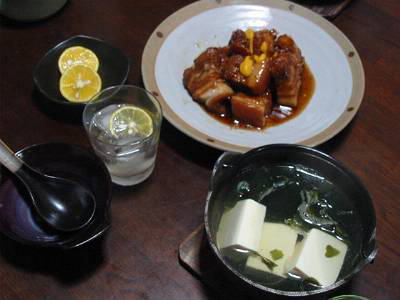 豚かな? 豚の角煮や名古屋名物土手煮も豚のホルモン使うし・・・ 一応オイラでも作れますこの2つ。 嫁に教えてもらって作ったことあり。 「私が死んでも作って食べれるでしょ」だって。 お料理上手な嫁ですので・・・胃袋握られてます(^^; 画像は過去にオイラの作った 豚の角煮と一人用湯豆腐とカボスの焼酎のロック(^^;