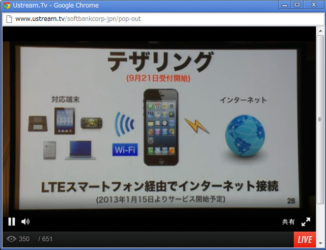 SoftBank 4G LTE対応スマートフォンがテザリングを可能にすると発表
