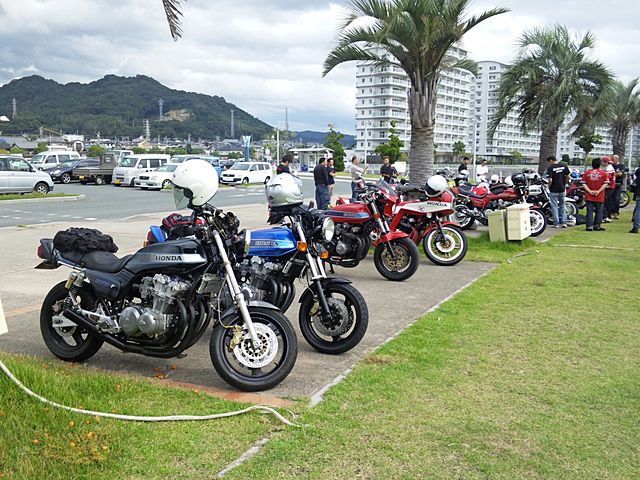 CB750Fと言うバイクの全国MTがありまして、オイラの知り合いが東京から蒲郡へ来るというので会いに行ってきました。 すごいカスタムされたCBがずらりありまして・・・ ここで女子の方にこんなこと書いてもね。 と言うことで帰りに11時半ごろから雨に打たれました(^^; 20分ぐらいかな? こんなバイクがたくさんありました