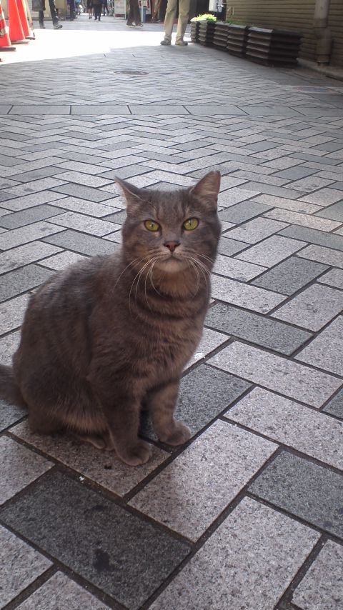 会社の近く… 通らないように言われてるけど…近道だから… 風俗街のソープの前で いつも 見かけるグレーのシッポ 話したいのに いつも逃げちゃう まだ 顔見たこと無い 想いはつのる やっと今日会えたぁ~(^_^)v ポンビキのお兄さんが笑ってたぁ