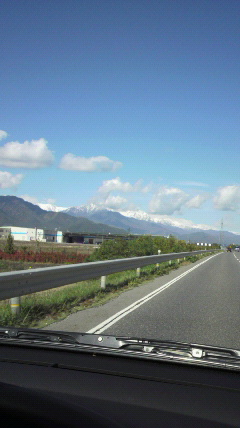 営業中、ふと山を見たら、頂上辺りが雪で白くなってました(*^^*)
