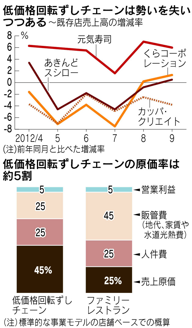 「105円均一」でデフレの波をとらえた低価格回転ずしの成長に陰りが。。。。