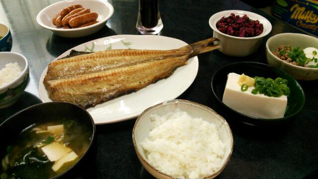 納豆温泉卵付き、しば漬け、ウィンナー。