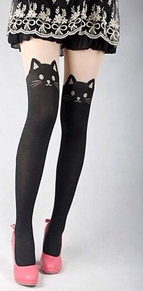 ニーハイ風にアレンジした猫タイツ!