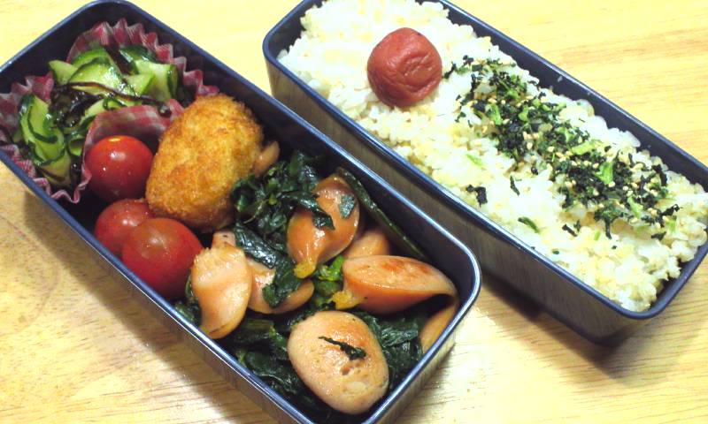 今日のおかずは、ウィンナーとホウレン草の焦がし醤油炒めです!