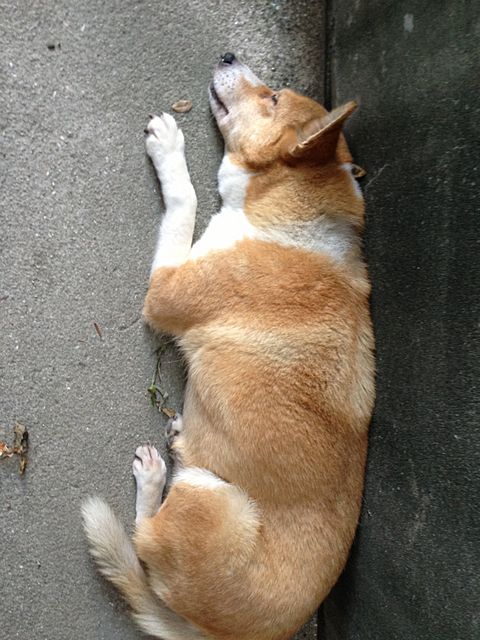 気持ちよさそうに寝てるのは、うちのチビです![]()