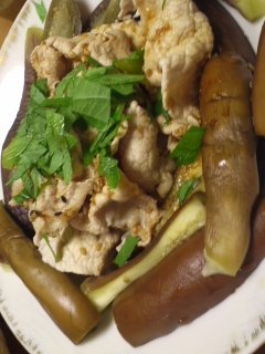 > 零夜しゃま( ^ω^)ノ 茄子です。色が変わってしまいました… あとは胡麻だれに大葉です☆
