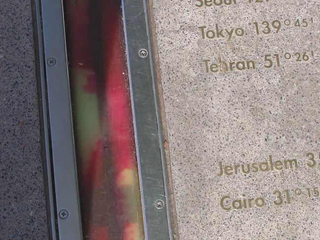 今日の画像は0度の子午線です。グリニッジ天文台に引いてあり、みんな跨って記念撮影してます。私もその線にまたがってこの写真をとりました。東京、と書いてありますね☆