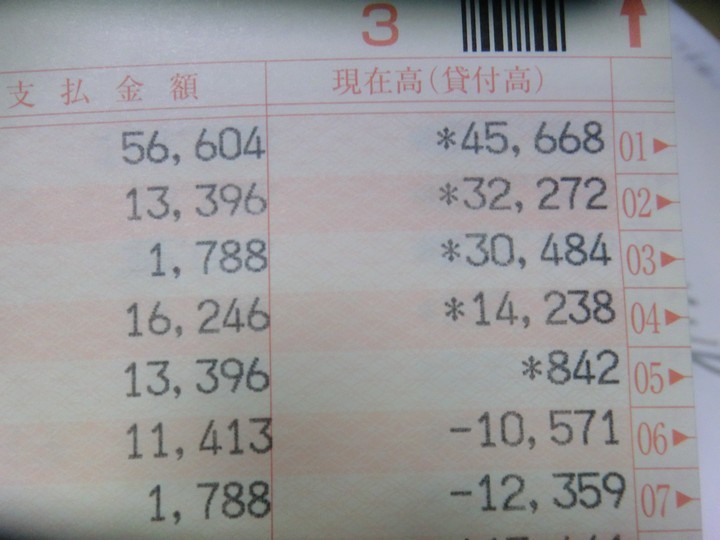 記帳した通帳を見ると・・・ マイナスになってんじゃないか。