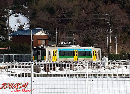 そうそう、月曜日に訪問したところの近くのセブンで遅い昼食をしていたら、久留里線の汽車が駅に入ってきました。