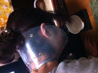首に動物病院のエリザベスカラーを巻いて、餌を食べさせられ… な、訳では有りませんよ。 我が家の猫のカラーを借りて 出来るかな~ あ、巻けた。 なんだかMの人みたいにだよ! と言われた。パシャりと撮られた一枚。そのまま水飲んでみて~と。 動物さんは大変だな。 いつもこんな格好でご飯を食べるんだなぁ~、なんてくだらない出来事。