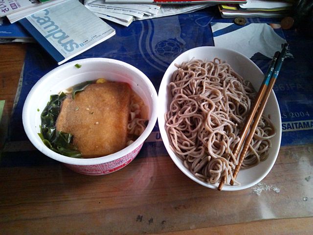 と言う訳で、某有名なインスタントうどん+我が家にある蕎麦と言う、あんま面白くない感じなんですが;;