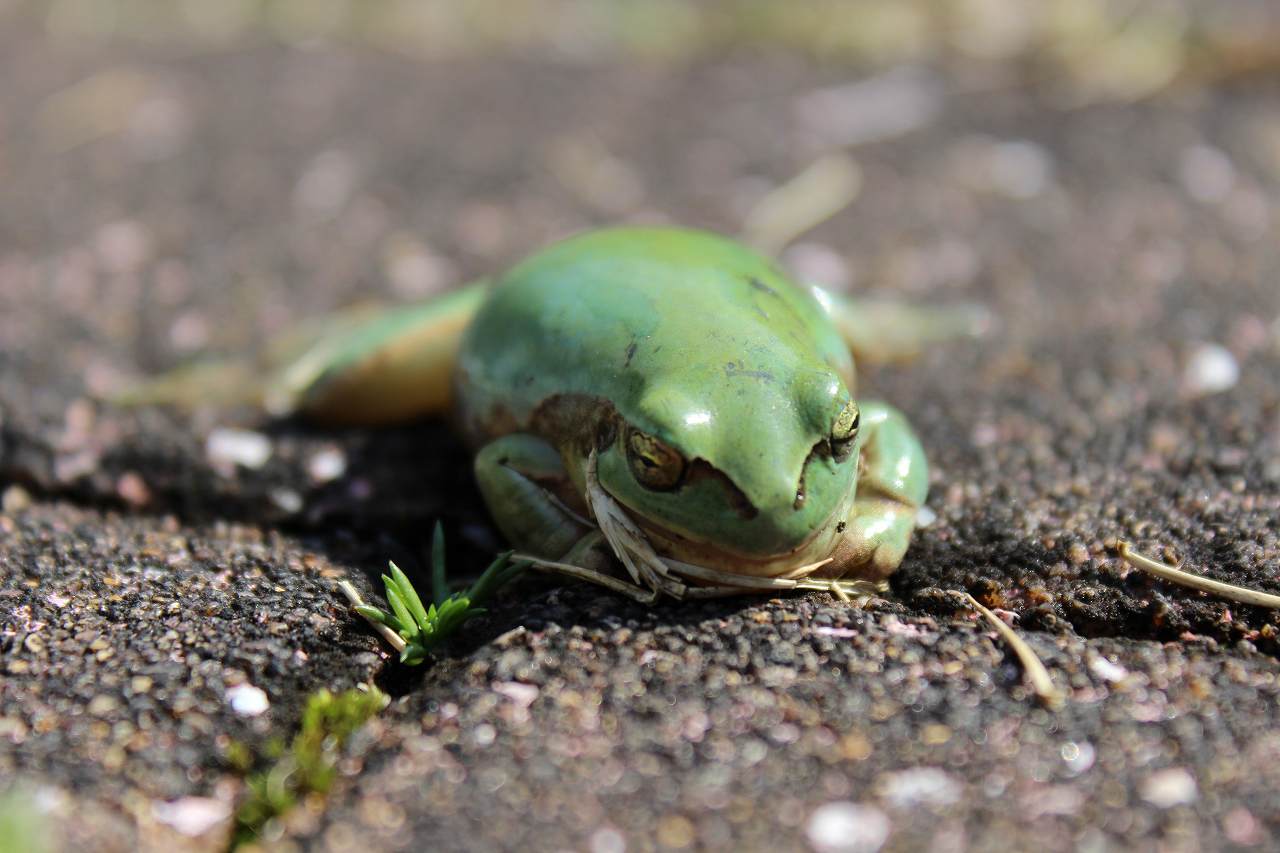今日は昨日と打って変わって、朝からとても穏やかな日和です。 冬眠から覚めたのか、アオガエルが日向ぼっこをしていました。