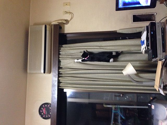 うちのお嬢さんは悪いことばかりしています。 最近のお気に入りは、カーテン登りです(≧∇≦) ボロボロになりそうです(*^_^*)