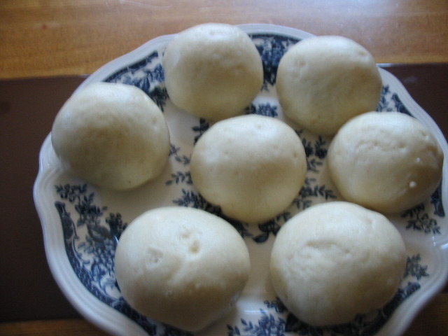 以前は発酵させた生地の塊を適当にちぎってそれぞれ具を詰めて蒸していましたが