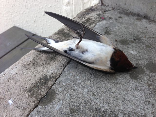 今朝方に玄関に迷い込んで来て出れなくなってたので、捕まえて逃がしたんです。