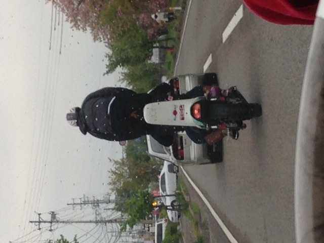前を走ってた二人乗りバイク。