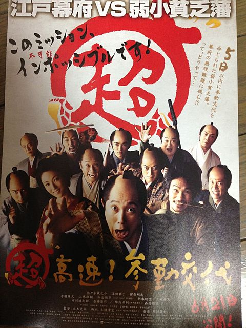 佐々木蔵之介主演他。5日以内に参勤交代を命じられた弱小貧乏藩。時間がない!カネがない!人もいない!しかも殿(佐々木蔵之介)はトラウマ持ち。突如現る謎の案内人(伊原剛志)は、いわくありげな抜け忍。行く手を阻む公儀隠密。さらに御庭番衆、百人番所まで・・・超難題!なミッションに、果たしてどう挑むのか!?天下無敵の江戸幕府VSたった7人の弱小貧乏藩・・・幕府からケンカを売られた弱小貧乏藩たちの、知恵と勇気の戦いが今、はじまる―。