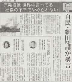 去年の7月22日、自民党の細田幹事長代理(当時)は、原発問題で、とんでもない発言をしていた その内容は 『福島の原発事故くらいで、原発は止められない』と、とんでもない発言をしていた