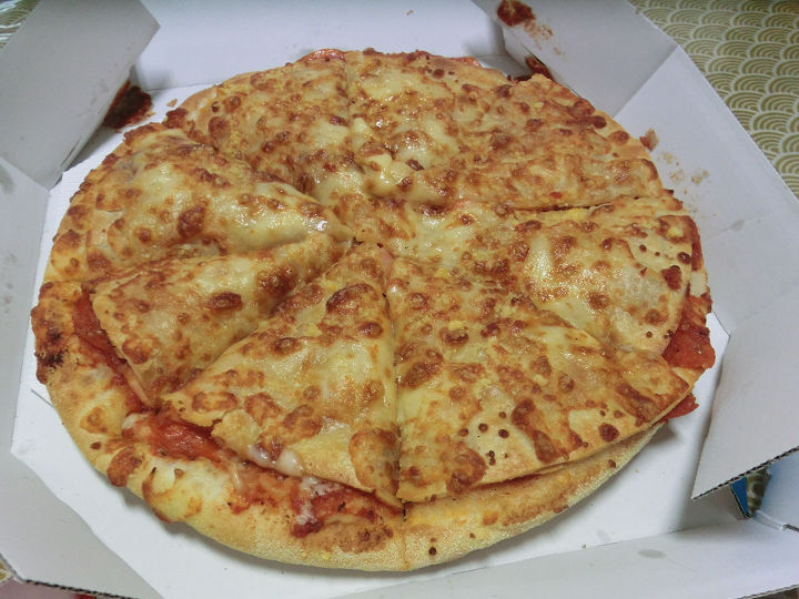 切れ目が入ってなかったら、おもしろい形のピザだったのかも知れない。