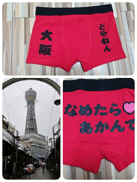 息子と関西の大学に進学した友達二人に通天閣でボクサーパンツを買ってみた♪