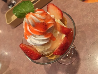 友達とお茶しに行って、プリンもおいしそうだったんですが、カープ勝利で気分が赤かったのでイチゴサンデーです。