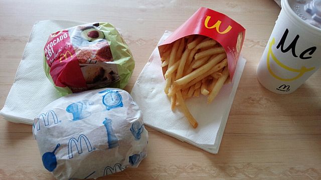 マックのアボカドバーガー♪♪ ビーフとエビ♪ エビのほうがおいしい∪・ω・∪ で、食べて1時間くらいしたら胃痛がil||li (OдO`) il||li るみ、アボカドアレルギーなの忘れてた(o;ω;o) 横になったらよくなったけど、やぱアボカドだめみたい(;´Д`) すきなのにい。。 でも、おいしかったε=ε=(ノ≧∇≦)ノ