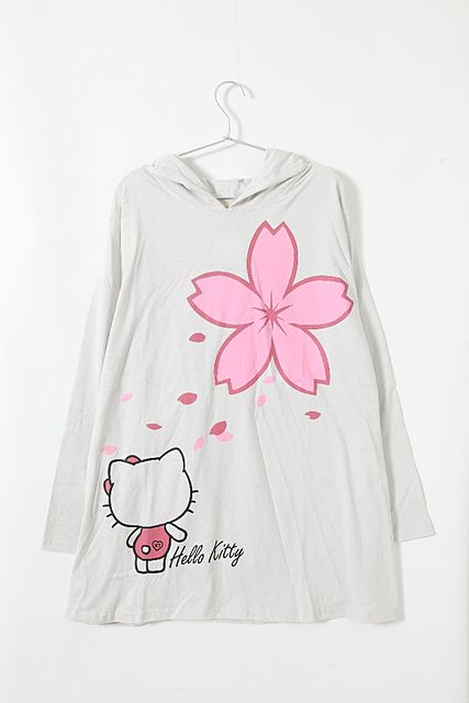 和柄ハローキティプリント♪すっぽりかぶれるフード付きカットソー