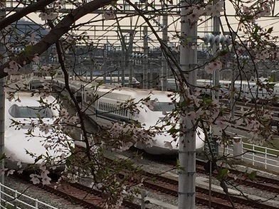 その前に新幹線車庫で、散りかけの桜を見てきました。