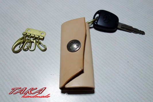 今まで使っていた物はキーが隠れるタイプだったのですが、使いづらくて、使いやすい金具があったら作ろうと思っていたところ、先日、行ったM&Kさんのところで使っていても金具の抜けづらい物を見つけました。