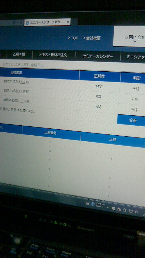 来月に危険物取扱者の試験があるんだけど、模擬試験で3科目60%以上取れたよ!! 乙種同様、この時期に合格基準に届いてるから、余裕かな。