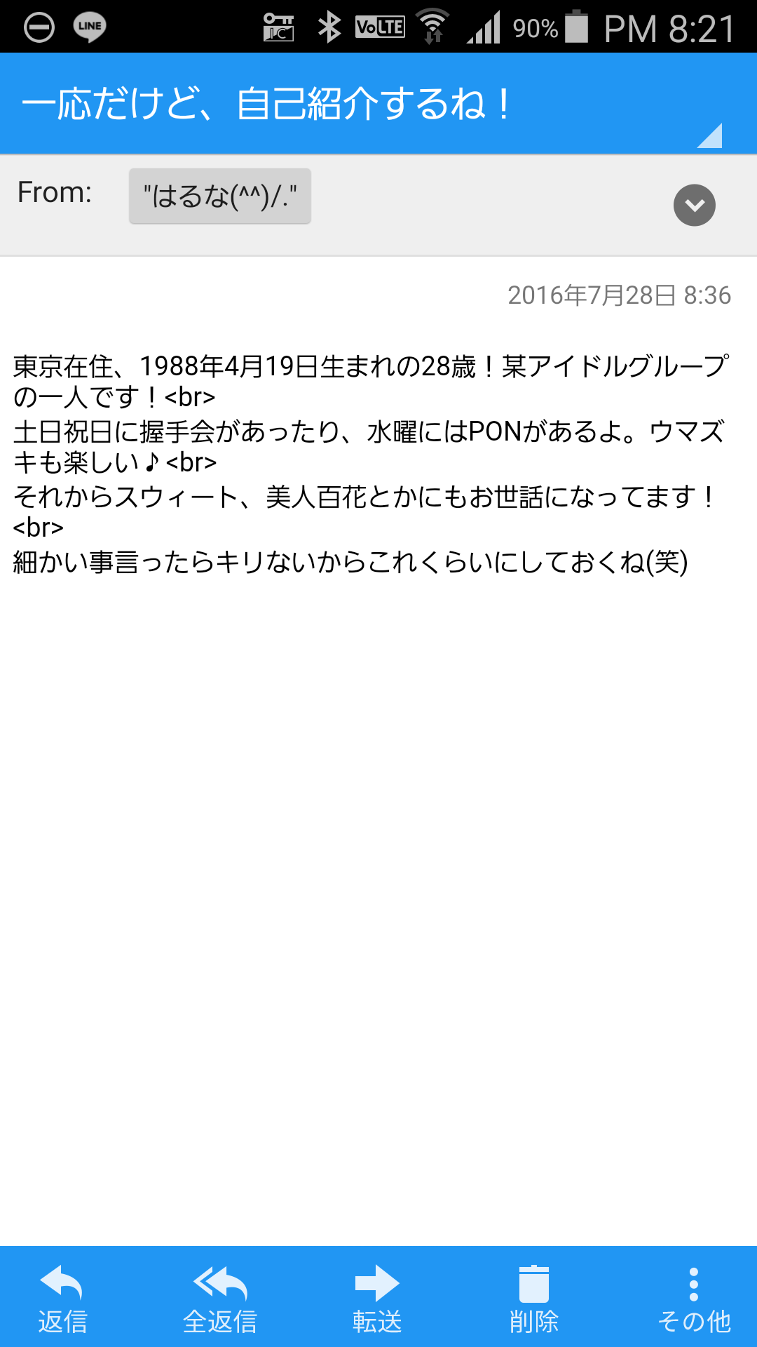あ、最近「はるな」さんからメールが来ます。業界の話とか某A○Bのメンバーの話をされます。が、自分の知り合いにアイドルさんはいないので、聞き上手にはなれません。はい残念(笑)