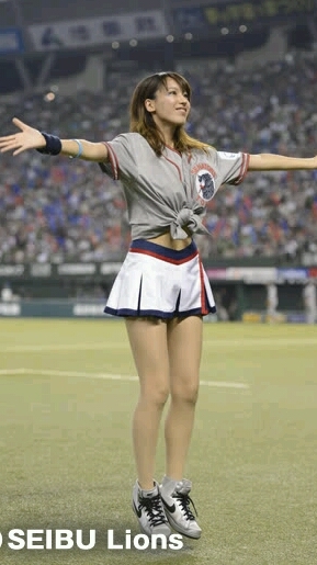 開場時にお出迎えしてくれるチアリーディングの女の子がお目当て(笑)