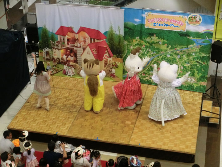 古い写真から 1枚。 前のほうでシルバニア・ファミリー・ショーを見てる子が 「うさぎの耳のサンバイザー」を被っている。 これは現地で無料配布されてる物である。 なのに! 私は サンバイザーをもらった事が無い。 正直なところ 私も欲しい。