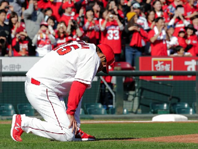 マウンドに膝まづき、涙する黒田さん…やばい、泣ける。