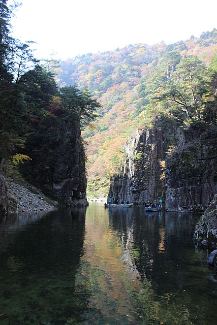 この時期のお出掛けは紅葉狩りがみんなの定番。 僕はみんなじゃないけど、みんなと同じく紅葉を見に行ってきました。 いい天気だったからね。 広島の紅葉スポットは色々あるけど、今日は三段峡。 広島に住んで32年。実は初めて行きました。 急流の川に沿って登ったり下ったりということで登山靴に履き替え、 いざ、三段峡へ。 急な流れと穏やかな流れの繰り返しの中、赤や黄色に染まった 木々が川に映っていい感じ。 渡船にも乗って、いい時間が過ごせました。