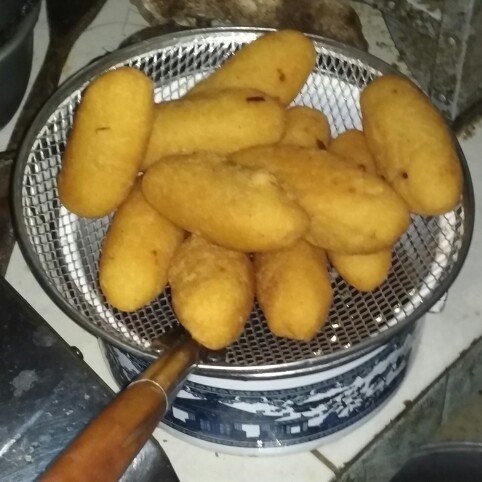 辛いオンチョムがおろしたてのキャッサバフライの中である